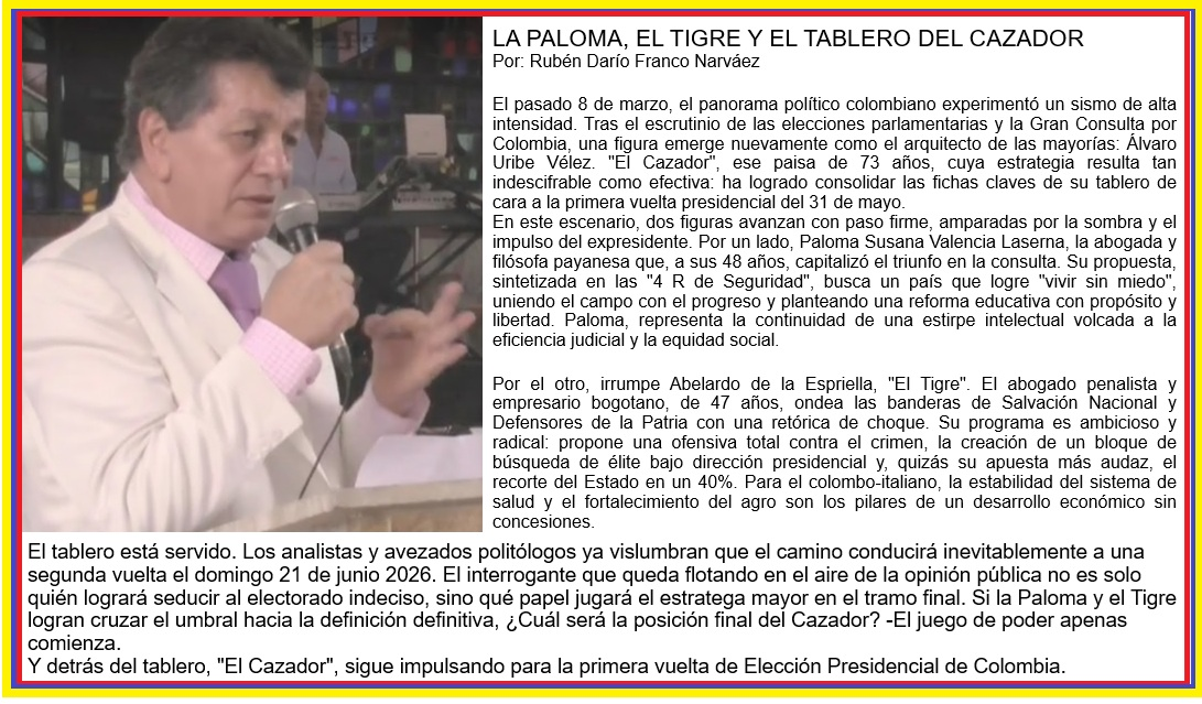Y detrás del tablero, «El Cazador», sigue impulsando para la primera vuelta de Elección Presidencial de Colombia.